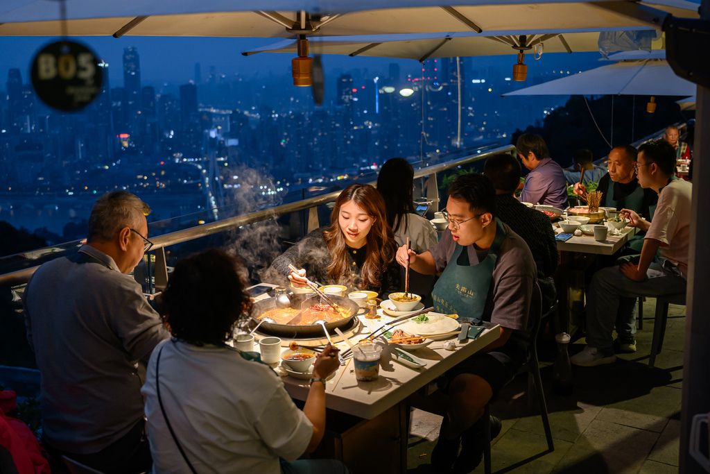 2024年10月5日,游客在重庆渝中区解放碑一商场选购化妆品。国庆假期,重庆洪崖洞、解放碑等热门景点、商圈人头攒动,假日经济持续火热。 中新社记者 何蓬磊 摄
