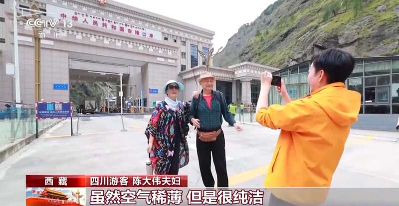 四川游客 陈大伟夫妇:虽然空气稀薄,但是很纯洁,它涤荡了我的心灵,这是祖国的大好河山,我们一路上是唱着歌来的,看到国门激动,这就是我们的感受。没有新中国就没有今天,赶上这么好的时光,心有所向。