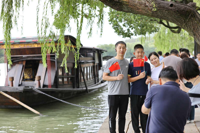 嘉兴南湖,游客如潮。10月1日至4日,仅南湖革命纪念馆,就吸引观众约6万人次。参加升旗仪式、参观《普天同庆迎辉煌》主题展后,市民程扬激动地说:“没想到开国大典上有这么多嘉兴人,身为嘉禾儿女,我感到很自豪!”
