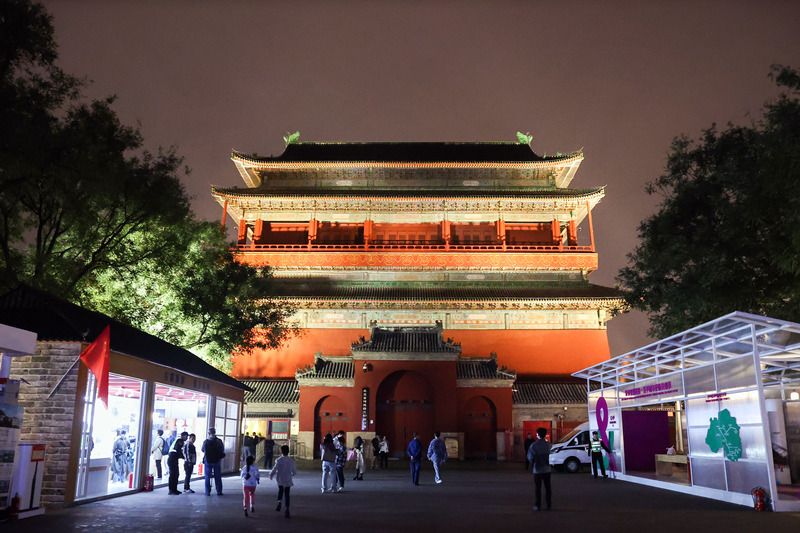 2024年10月6日,北京,游人在观赏北京钟楼夜景。