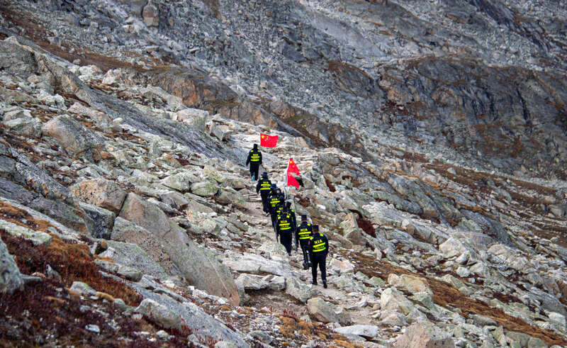 “看到那边没?沿着山坡朝那走,就能到界桩。”民警米玛指着一处雪山说,“慢一点,来回4个小时能走完。”一路上,山风呼啸,乱石堆叠,时缓时陡,看起来近在咫尺的雪山,让人生起一阵“不可及”的无力感。而就是这样“望山跑死马”的路,霍尔巴边境派出所民警、护边员一年要往返数百次,硬是把平平无奇、杂乱无章的草石,走成了痕迹一目了然的“地标物”和“风景线”。