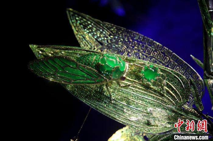 蝉身的翡翠圆珠皆用“内格榫卯嵌接法”镶嵌,切割形成榫与榫眼一样的凿枘,令圆珠无需爪脚也能紧扣蝉身。此方法是从中国明式家具工艺及叠罗汉杂技中得到的启发。