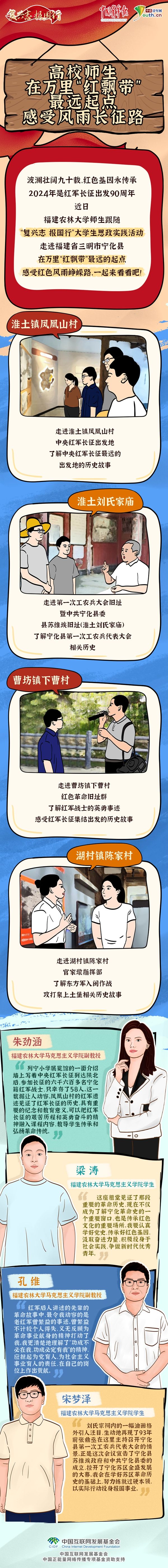 中国青年网北京10月9日电(记者 李华锡)波澜壮阔九十载,红色基因永传承。2024年是红军长征出发90周年,近日,福建农林大学师生跟随“复兴志 报国行”大学生思政实践活动,走进福建省三明市宁化县,在万里“红飘带”最远的起点,感受红色风雨峥嵘路,一起来看看吧!