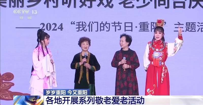 江苏南京溧水区九塘村的老人们重阳节里则迎来了一场文化盛宴,市演艺集团组织青年戏曲演员,带来了京剧、越剧的精彩表演,为村里的老人们送上了节日的问候和祝福。