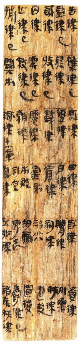 然而,近50年来,秦至西汉早期的律一再出土,比如,湖北云梦睡虎地秦律、湖北江陵张家山汉简《二年律令》和《汉律十六章》、湖南益阳兔子山木牍上的律章目录、湖北荆州胡家草场汉律等。在湖北睡虎地秦简、湖南里耶秦简中,还有一些与律令有关的文书档案。