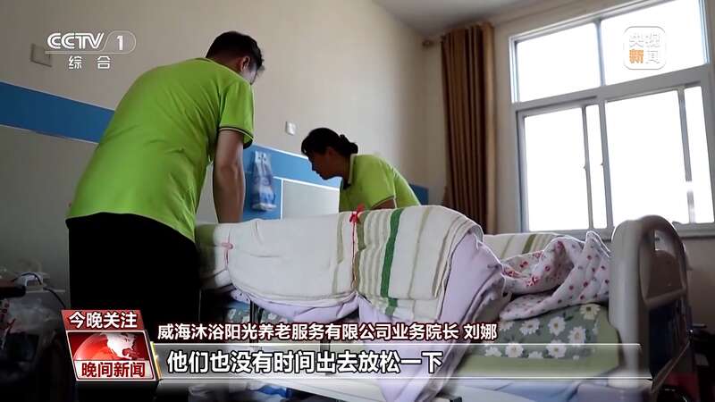 威海沐浴阳光养老服务有限公司业务院长 刘娜:子女照顾起来特别难,他们也没有时间出去放松一下,可以送到我们这来,我们是7天免费入住的,所以叫“喘息服务”。