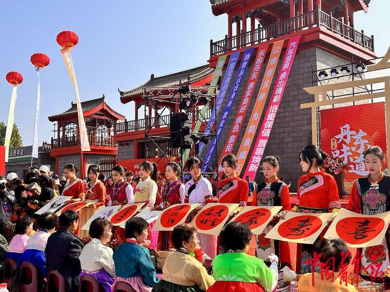 中国青年报客户端丹东10月11日电(中青报· 中青网记者 何春中)10月11日是重阳节,由辽宁省丹东市商务局、丹东市民族和宗教事务局、丹东市民政局、丹东市老龄工作委员会主办,丹东市民族团结进步促进会、丹东市朝鲜族联合会承办的重阳节专场演出"岁月悠悠,民族共融”璀璨长寿宴在虎山长城举行。