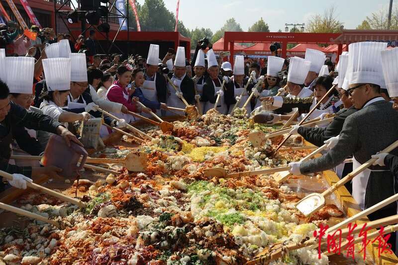 千人拌饭。中青报·中青网记者 何春中/摄