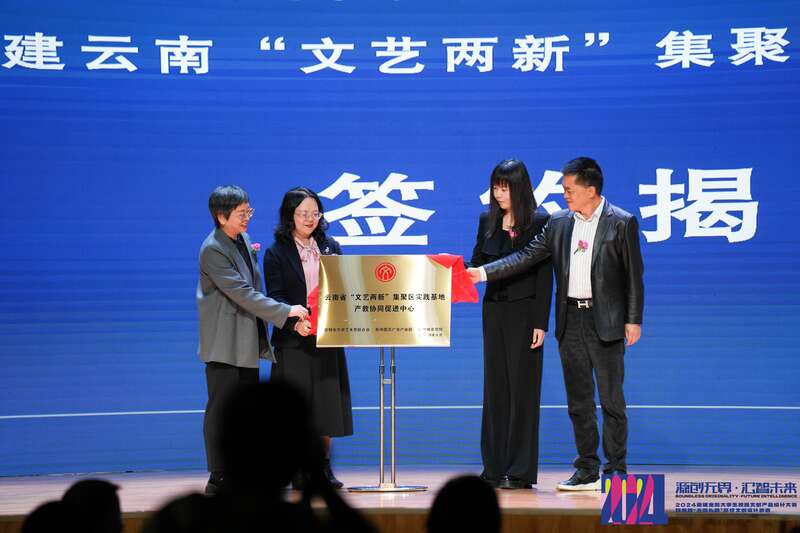 当天,还举行了云南“文艺两新”集聚区实践基地产教协同促进中心揭牌仪式。昆明城市学院与昆明国家广告产业园签订合作协议,双方将致力于建机制、搭平台、引资源、立项目,推进文联与基地协同发展,激发“文艺两新”创新创造活力,共同构建高校与园区良性互动、资源共享的工作格局。