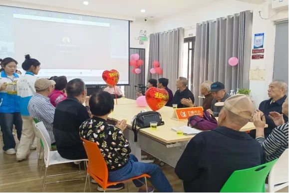 在武汉,常青一社区携手“小红帽”志愿服务队,在老年服务中心举办了温馨而丰富的敬老助老活动。为老人敬菊花茶,带领他们做拍手操、学习八段锦,并组织了集体庆生。