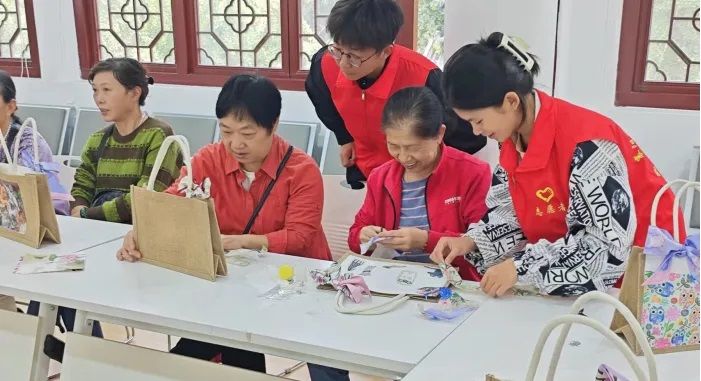 襄阳汽车职业技术学院智能制造学院的志愿者们走进襄城区卉木林巷社区,举办了一场别开生面的重阳雅集活动,与老人们一同制作蝶骨巴特包,传递温暖真情。
