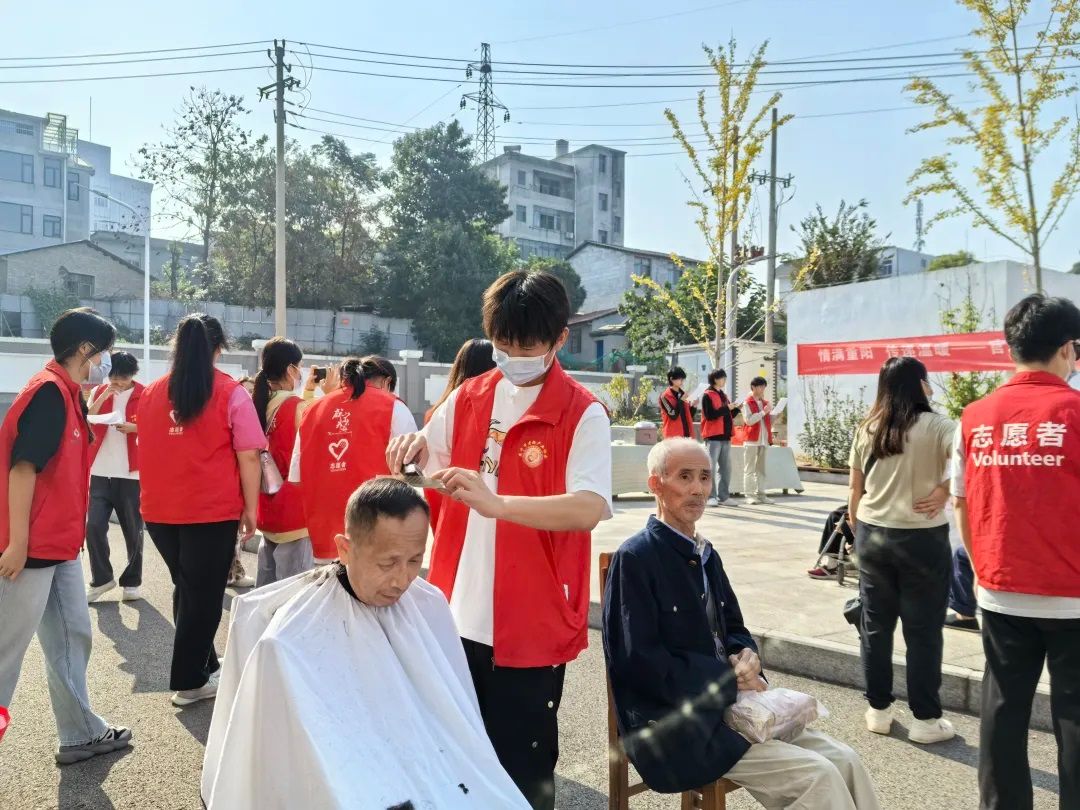 槐荫办事处东李咀社区、孝感市义工联合会、孝感市志远社会工作服务中心联合开展“重阳敬老 情暖东李咀”重阳节便民服务送长寿面活动,提供理发、磨刀、小家电维修等服务。