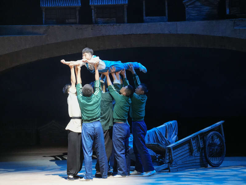 演出一开始就营造出浓郁的老北京风情,把人们拉回到60多年前的历史情境中,小船在水中飘荡、鸽子在天空飞舞、孩子在胡同里游戏,北戏京剧系的学生本色出演,尽显童年的天真童趣。这个过程中,小演员充分展示了京剧唱念做打、手眼身法步的“四功五法”,漂亮利落的空翻大大增加了剧目的可看性,也展示了北戏推动戏曲艺术传承发展的教学成果。