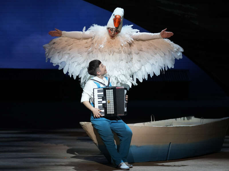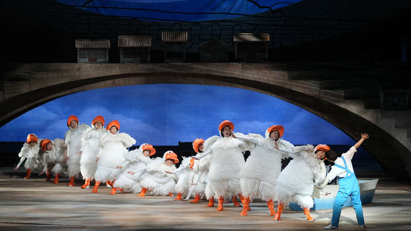 在塑造性格饱满的各色人物的同时,剧中还有一群特殊的角色——十多只身披洁白羽毛、憨态可掬的大鹅。一段群鹅舞活泼有趣,让人忍俊不禁;小鹅们还会走下舞台,来到观众席与人近距离互动。