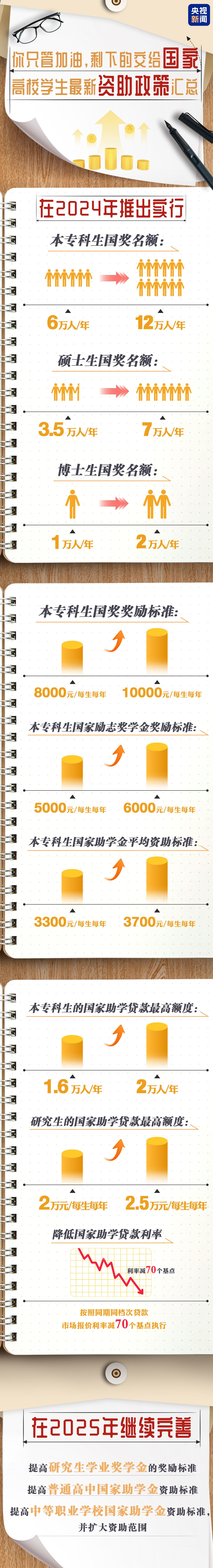 国家奖学金名额翻倍