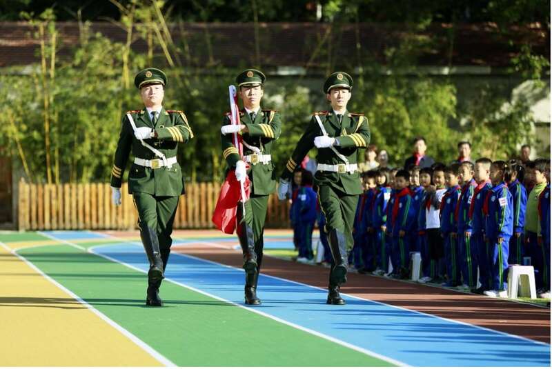 随着升国旗仪式开始,活动拉开帷幕。三位原天安门国旗班战士为师生进行队列展示,全国学校升旗手总教官、天安门国旗护卫队国旗班第一任班长赵新风以《我与国旗的故事》为题,为同学们带来一节微队课。