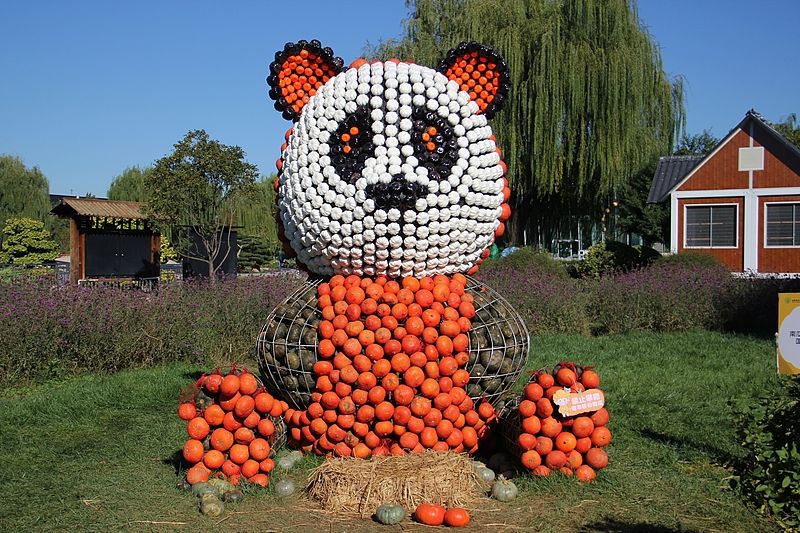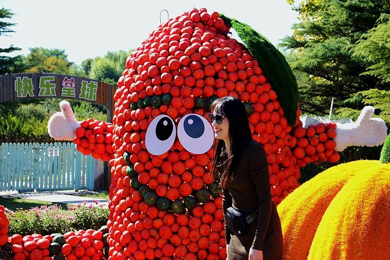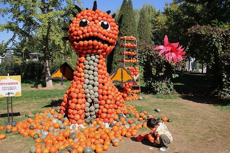 2024年10月15日,北京,世界花卉大观园第二届巨型南瓜节开展以来,热度不减。用20万个南瓜搭建的各种造型,如狮子,龙和拖拉机,南瓜巴士等,受到游客的欢迎。