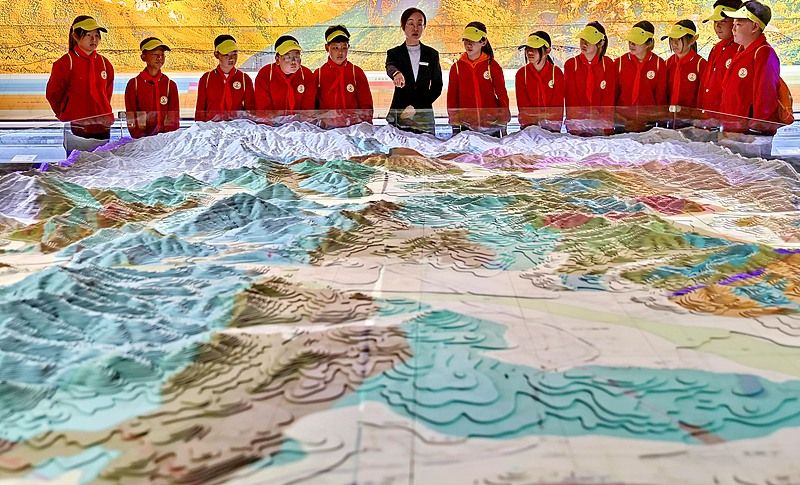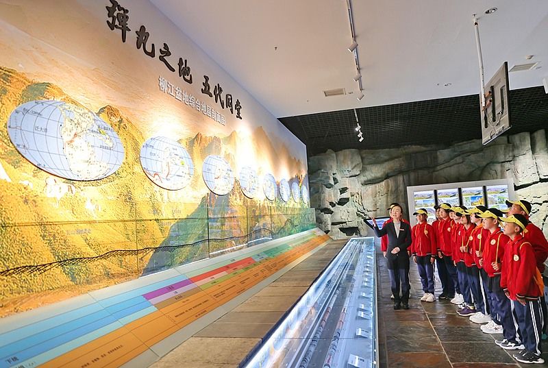 2024年10月15日,河北秦皇岛,柳江地学博物馆讲解员为海港区石岭小学学生普及地质相关知识。
