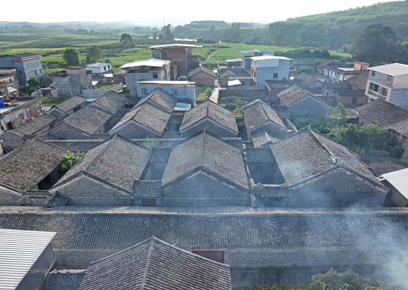这是炊烟升腾的广西来宾市象州罗秀镇纳禄村(10月9日摄,无人机照片)。