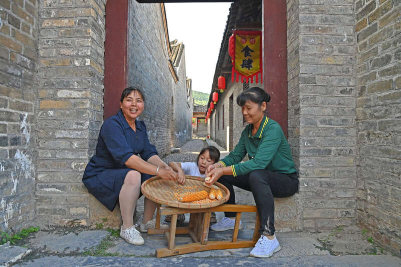 村民在广西来宾市象州罗秀镇纳禄村剥玉米(10月10日摄)。