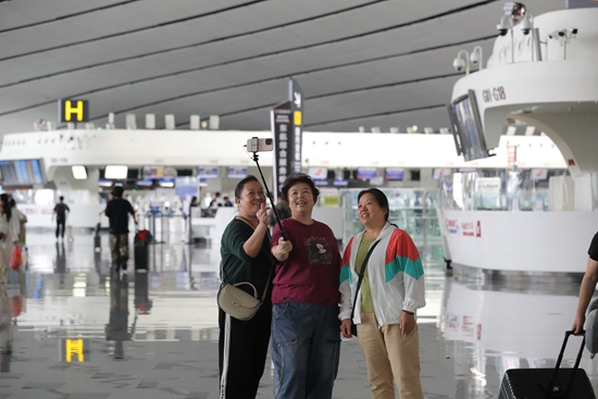 数据显示,假期期间大兴机场航班始发正常率、放行正常率、起飞正常率均达95%以上。“在服务方面,大兴机场持续开展‘兴心相印’全链条服务,并进行国庆主题装饰,各城市航站楼为值机旅客发放宣传扇,为往来旅客带来愉悦的出行氛围。”大兴机场新闻中心工作人员来靖晗对记者说。