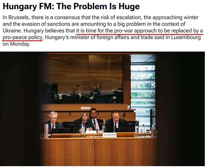 本月14日,匈牙利外长西雅尔多也表示,欧盟的乌克兰政策存在很大问题。他说,既然尝试了两年多“亲战”的做法,被证明不成功,现在是时候用支持和平的政策取代支持战争的政策了。