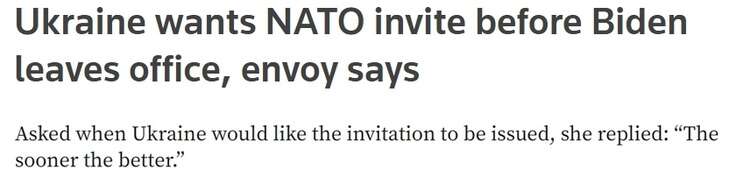 加利巴连科说,乌克兰认为,此时向乌方发出入约邀请,“可以成为美国现任政府政治遗产的一部分”。当被问及乌克兰希望北约何时发出邀请时,她回答, “越快越好”。