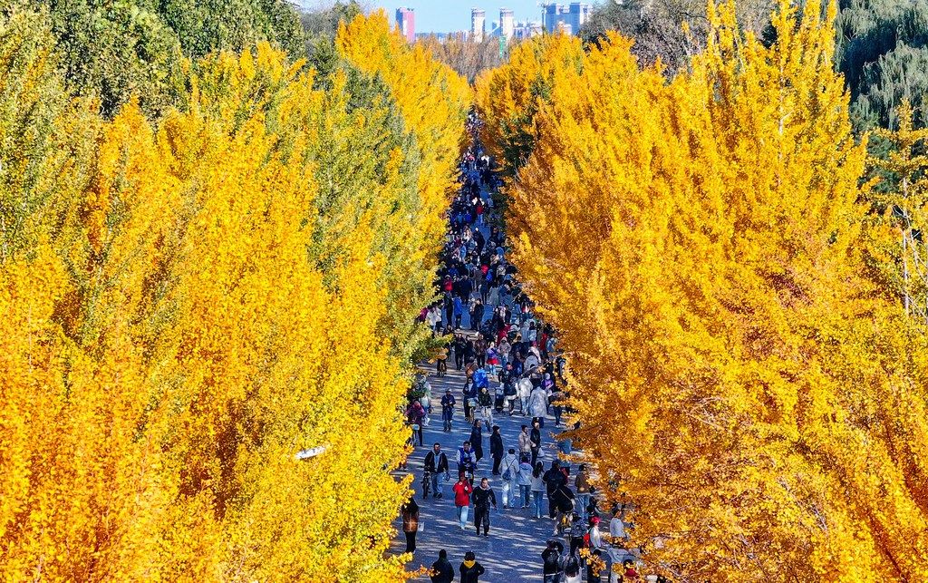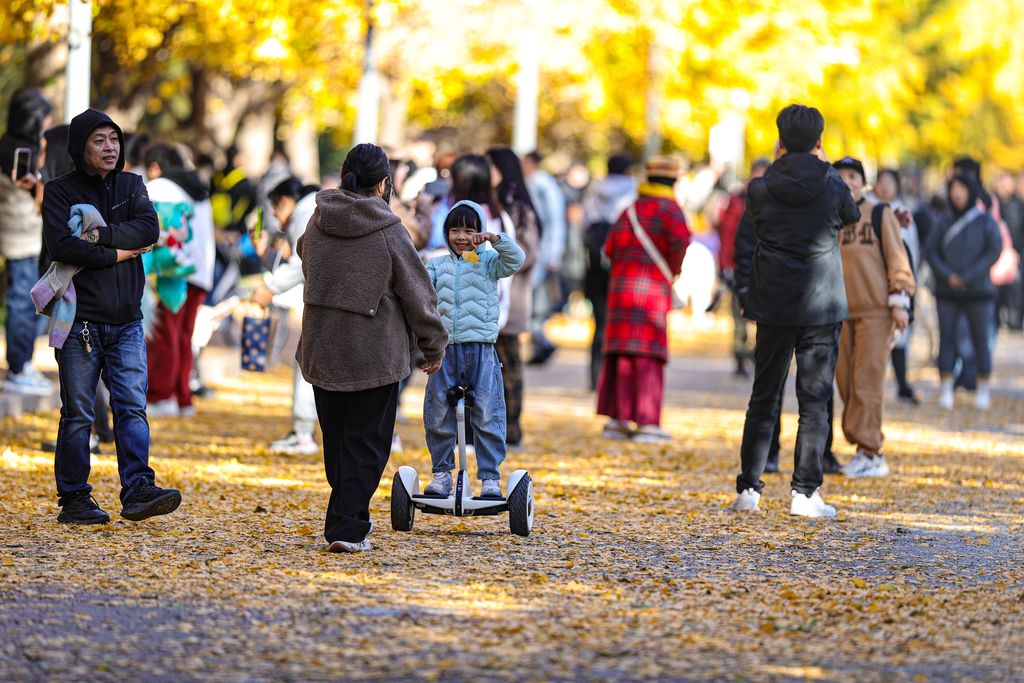 2024年10月19日,市民涌进沈阳农业大学观银杏赏秋色。