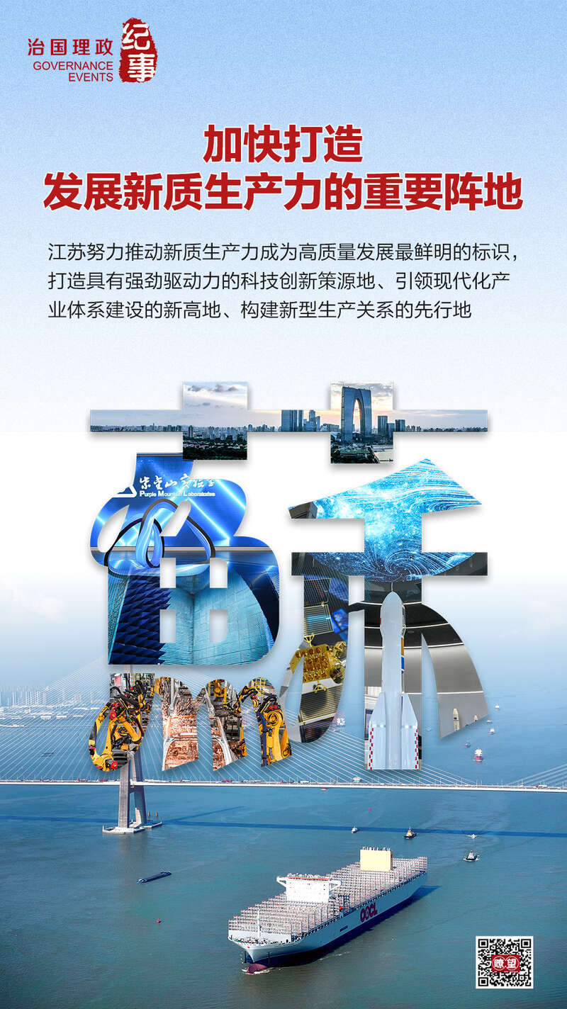 制定“任务书”、拿出“时间表”、画出“路线图”,曾抢抓乡镇企业、外向型经济、创新型经济机遇实现自身跨越发展的江苏,又一次拿出“咬定青山不放松”的决心,找准切入点、下好先手棋,努力推动新质生产力成为高质量发展最鲜明的标识,以实干担当绘就一幅生机盎然的发展图景。