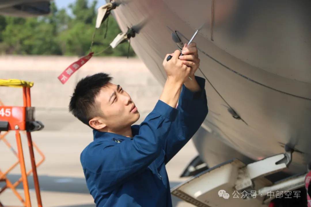 机务官兵熟练地使用工具