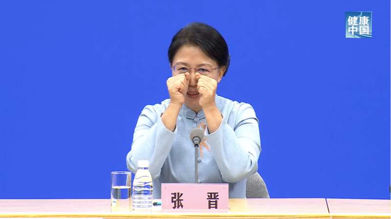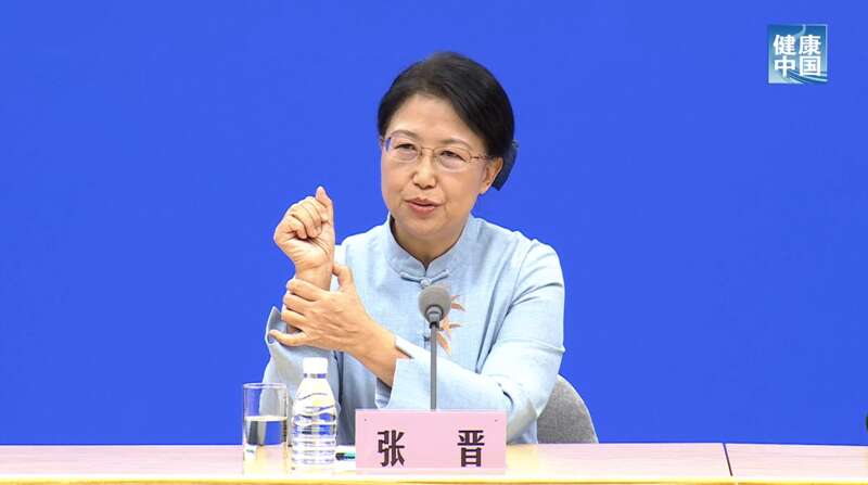 张晋在发布会上示范如何取列缺穴。图片来源:微信公众号“健康中国”