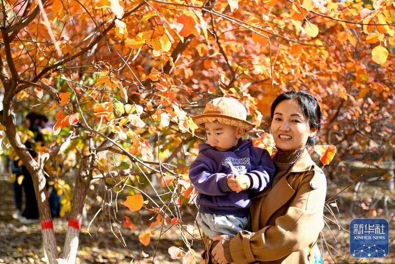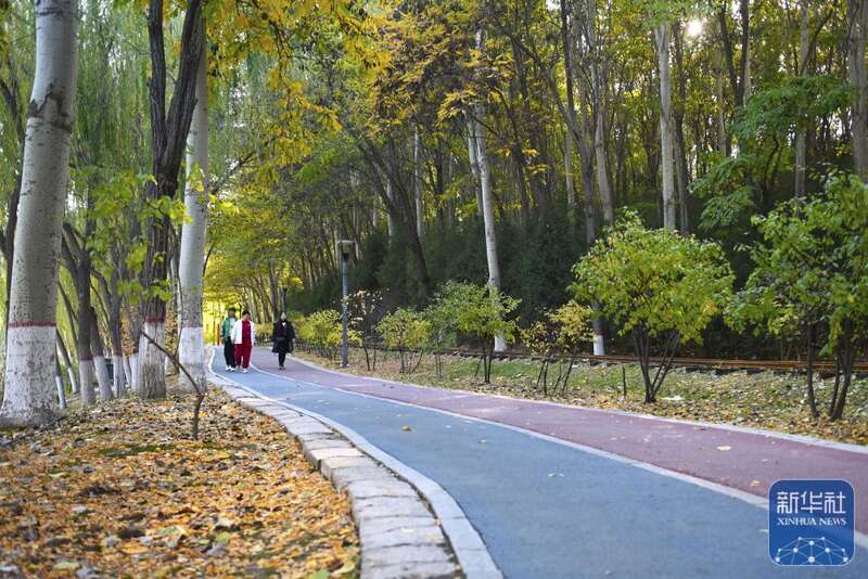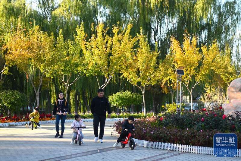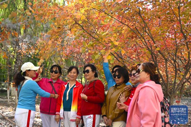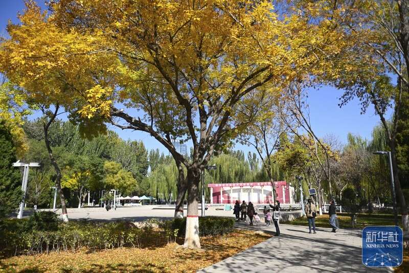 10月22日,人们在银川市凤凰公园欣赏秋景。