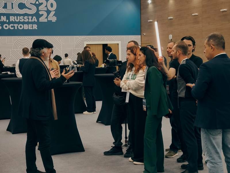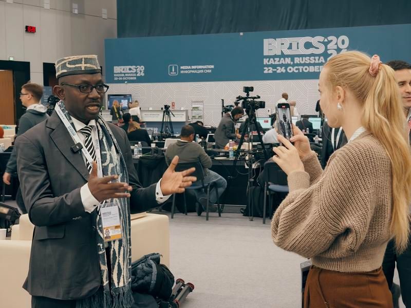 10月22日,俄罗斯喀山,金砖国家领导人第十六次会晤新闻中心开始运行,一位嘉宾在新闻中心接受采访。中青报·中青网记者 赵祺/摄