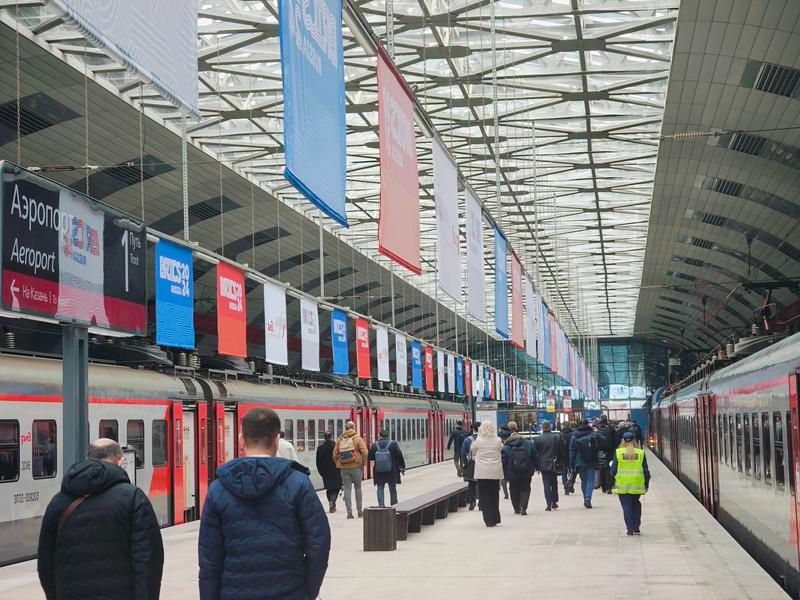 10月22日,俄罗斯喀山机场火车站,金砖峰会期间,参与报道的各国媒体工作人员需搭乘快速火车从喀山城区前往位于喀山机场附近的新闻中心工作。中青报·中青网记者 赵祺/摄