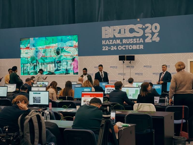 本次金砖峰会吸引了各国媒体的强烈关注。10月22日,金砖国家领导人第十六次会晤设在喀山会展中心的峰会新闻中心正式开始运行。这个中心是注册媒体工作人员的主要工作场所,为与会各国媒体工作人员提供新闻发布、技术保障、信息咨询、餐饮及交通等服务。据主办方介绍,共有来自59个国家的2000余名新闻媒体工作人员参与此次金砖峰会报道。