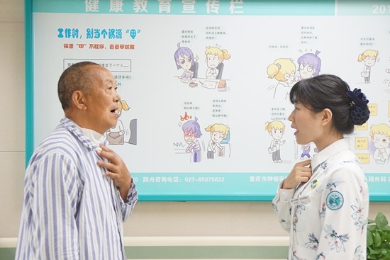 回到重庆后,她在与患者相处中磨“打嗝技术”。学会自如地“打嗝”只是第一步,要连贯说出一句话,需要不断调动食管内的气体,还要配合口腔的运动才能发出准确的音,将常规利用声带振动发声转化为气体在食管振动发声。