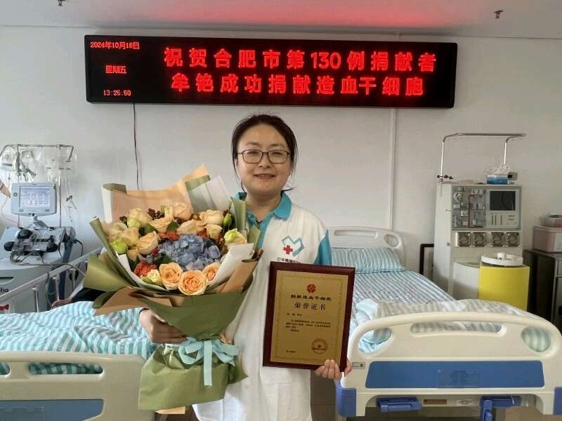 2024年8月13日,牟铯接到合肥红十字会的电话,她与一名来自四川的男性患者初筛条件吻合。10月8日,牟铯顺利完成了体检,确定了移植方案及时间。10天后,牟铯成功完成造血干细胞的移植。