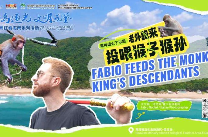 意大利摄影师Fabio在猴岛变身“悟空”。海南国际传播中心供图