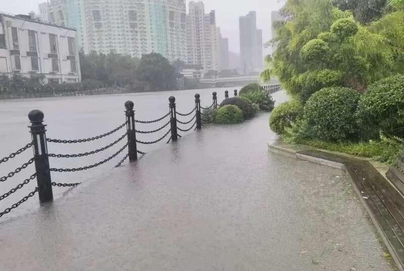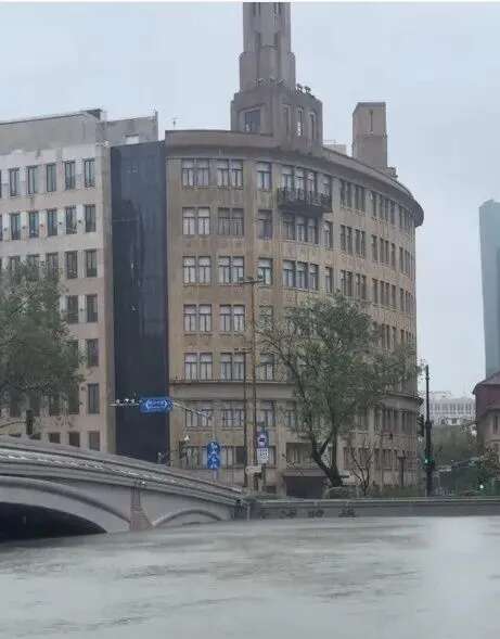 (图为部分网友拍摄的苏州河沿岸河水溢出的画面。上海发布供图。)