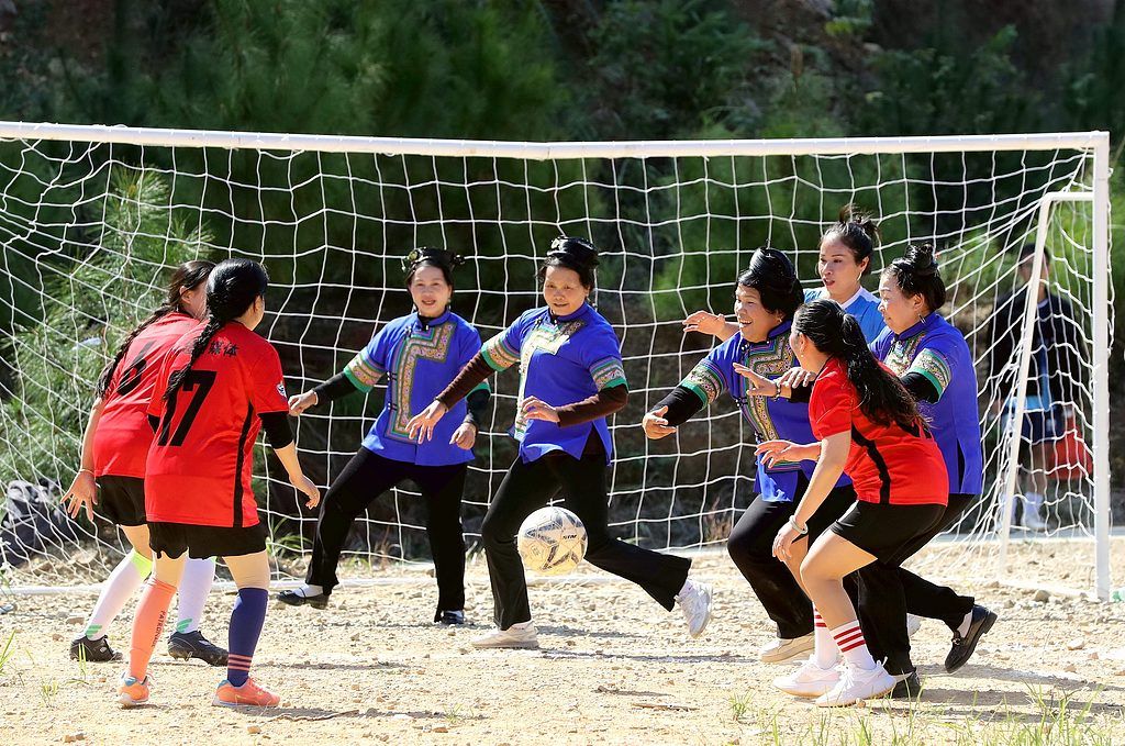 当日,乡村流动集市在贵州省黔东南苗族侗族自治州榕江县兴华水族乡田懂村开启,在集市除了特色农产品销售、民族文化展演之外,更吸引游客眼球的是乡村趣味性足球友谊赛。乡村流动集市是当地群众自发组织的商贸活动,每周流动在各边远山区赶集。通过文化搭台,让边远山区农特产品销售到山外,促进乡村经济社会发展,助推乡村旅游业,让观众和游客感受乡村趣味性足球赛带来的快乐。