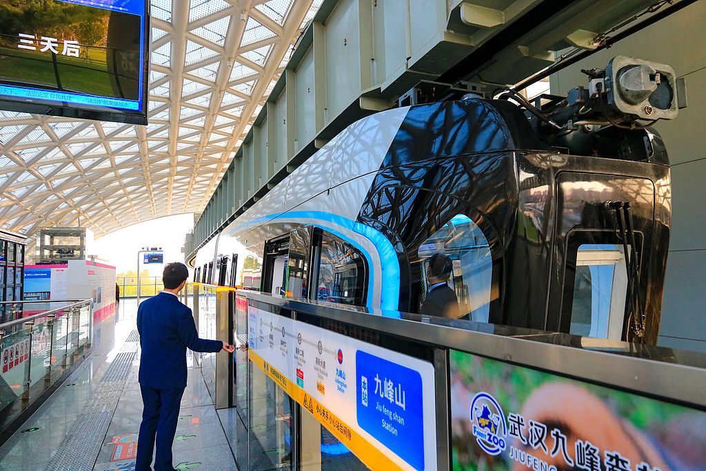 2024年11月2日,湖北武汉,武汉光谷“光子号”空轨,作为国内首条开通运营的空轨线路,全长10.5公里,吸引了大量游客前来体验。