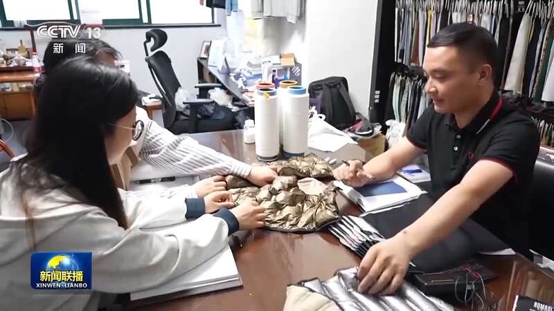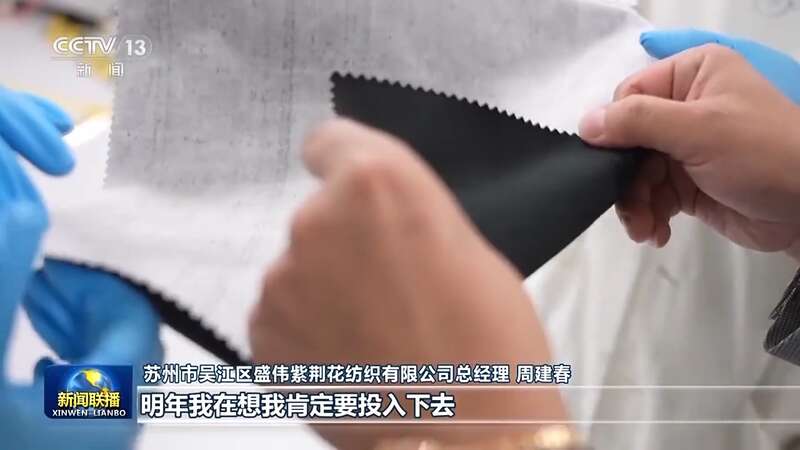 短短4天里,展会的交易额就突破15亿元,盛泽镇的面料为什么如此受欢迎?记者采访时发现,这里的企业几乎都在“苦练内功”。在一家企业的实验室里,工作人员向记者展示了一款保温面料,经过测试,新面料的表面温度与普通面料相比可以达到近10摄氏度的温差。