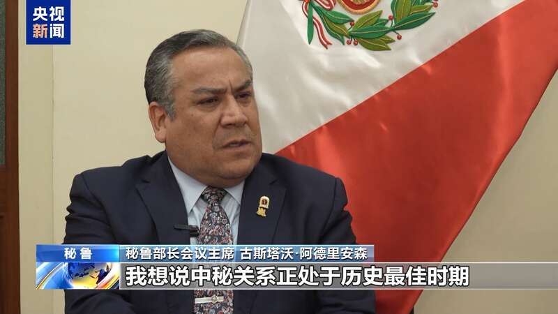 秘鲁部长会议主席 古斯塔沃·阿德里安森:我想说,中秘关系正处于历史最佳时期,两个古老民族齐心协力在不同领域开展合作。我们知悉中国政府正在为全球南方国家提供合作,我们对此心怀感激。作为全球南方国家之一,秘鲁从中国的投资中受益良多,希望两国能继续巩固双方已有的良好关系,继续加强两国商业互动。秘鲁经济有两个关键领域,采矿业和农产品出口,我们希望这些领域的投资继续增长,希望不断有新项目促进秘鲁的发展,并改善秘鲁人民的就业和福祉。