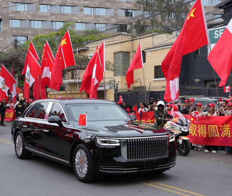 当地时间11月17日,国家主席习近平乘专机离开秘鲁利马。