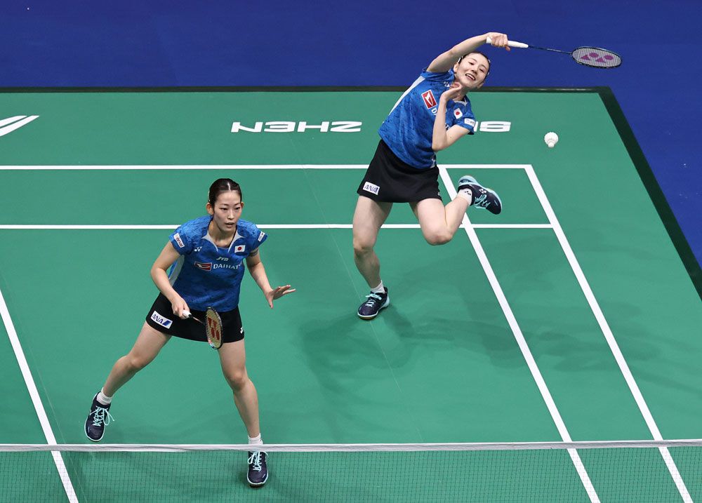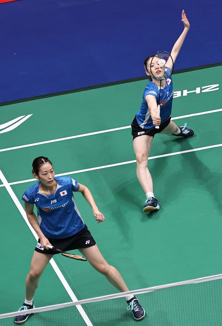 日本女子组合松山奈未(左)和志田千阳在比赛中。刘占崑/摄