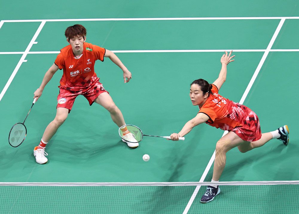 日本女子组合松山奈未/志田千阳以21比10和21比19直落两局,战胜中华台北的谢沛珊/洪恩慈,锁定8强。