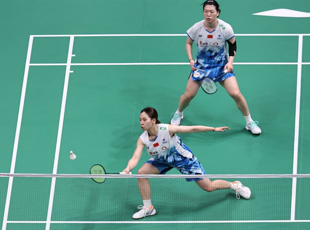 中国女双选手刘圣书/谭宁以2比0战胜印度选手乔莉/葛雅特莉,进入女双8强。