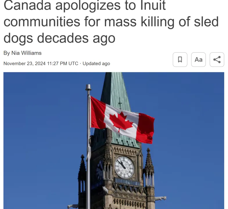代表魁北克因纽特人的马基维克公司主席皮塔·阿塔米说,从20世纪50年代中期开始,在因纽特人居住区,加拿大皇家骑警和其他政府部门射杀了数千只雪橇犬,这些雪橇犬是因纽特人文化和狩猎传统中不可或缺的一部分。
