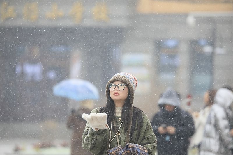 2024年11月26日,哈尔滨迎强降雪天气,城市银装素裹,美丽如画。