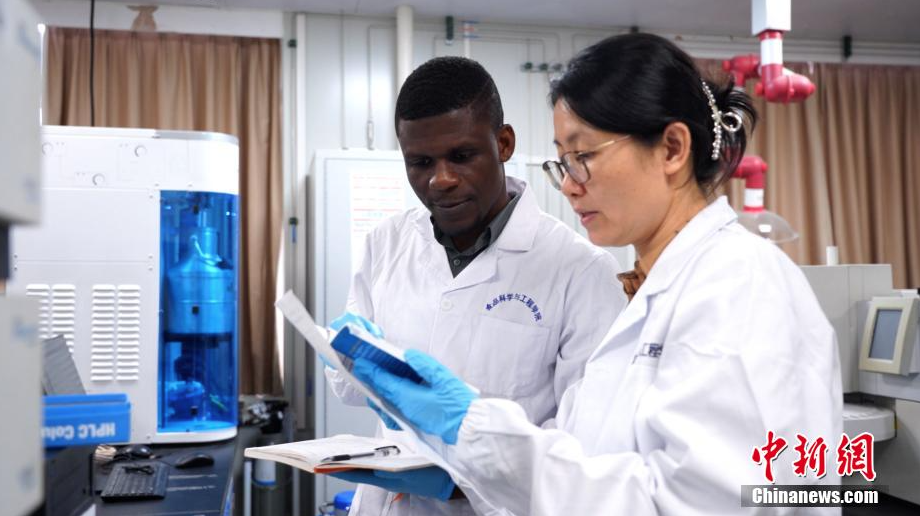 2014年,他成功申请到“中国政府奖学金”,在山东大学学习了近一年汉语;2015年,进入南方医科大学营养与食品卫生专业攻读硕士研究生;2018年又成功进入华南理工大学食品科学与工程学院攻读博士研究生,跟着导师任娇艳教授从事大豆肽营养功效研究,并在2021年顺利毕业。图为广东广州,威廉与导师任娇艳教授做实验。中新社记者 何俊杰 摄